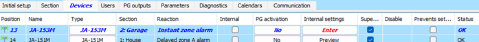 - The peripheral device transmits immediately, whenever the detector is activated, the cover is opened, a fault occurs, etc. Any signal from the peripheral device triggers a response from the control panel, including the possible recording of a new configuration.