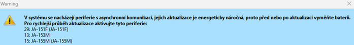 - Pokud jsou v systému asynchronní periferie, F-Link na tuto skutečnost před zahájením aktualizace upozorní.