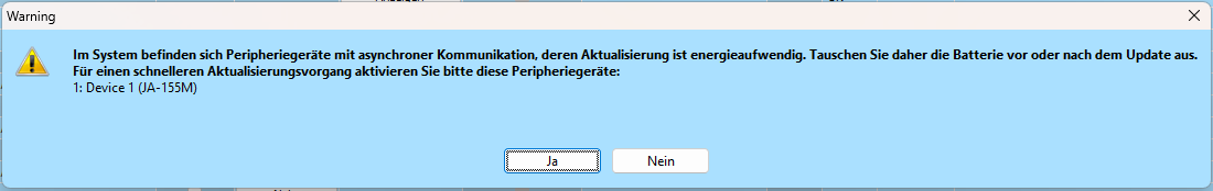 - Befinden sich asynchrone Peripheriegeräte im System, weist F-Link vor Beginn der Aktualisierung darauf hin.