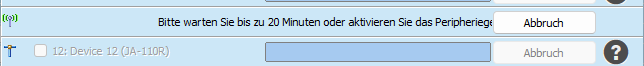 - Genau wie beim Speichern neuer Einstellungen muss auch zum Starten der Aktualisierung das Peripheriegerät zunächst ein Signal an die Zentrale senden. Dies kann wiederum durch Aktivieren des Peripheriegeräts oder Öffnen seiner Abdeckung beschleunigt werden.