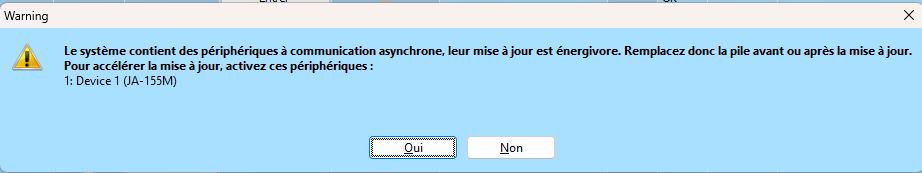 - Si le système comporte des périphériques asynchrones, F-Link vous en informera avant de lancer la mise à jour.