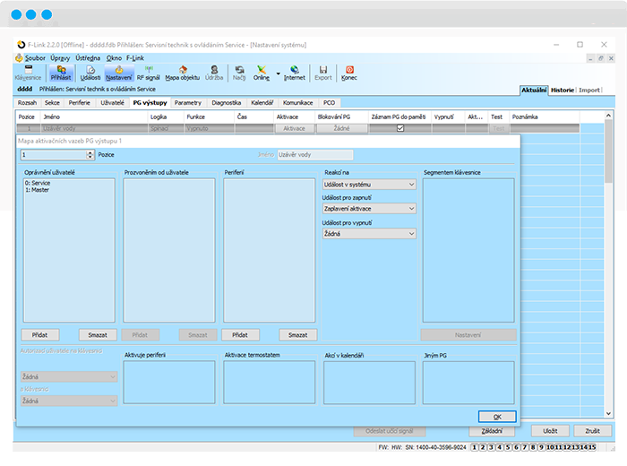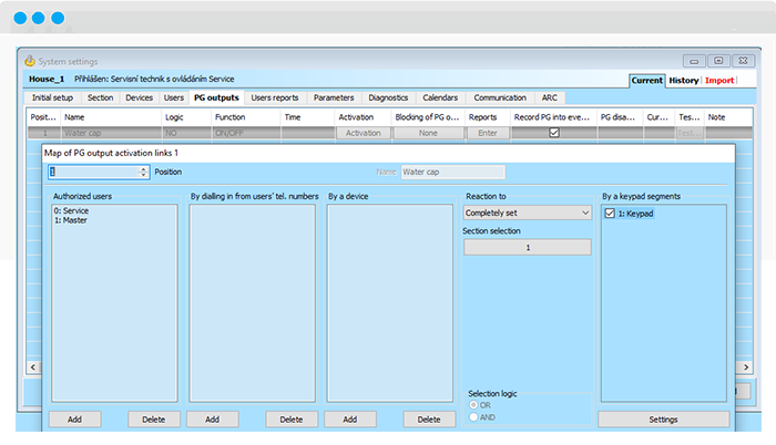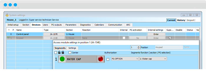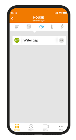 La vanne d’arrêt d’eau peut être commandée localement depuis le segment clavier et à distance en dehors du bâtiment. Pour le contrôle à distance, l’application web ou mobile MyJABLOTRON peut être utilisée en cliquant sur un segment virtuel ou par une commande SMS avec texte définissable.