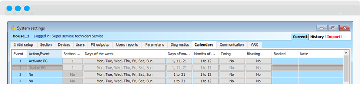 Dans notre exemple, un événement calendrier est configuré pour ouvrir et fermer la vanne d’arrêt durant une courte période environ tous les 10 jours. L’arrosage durera plusieurs minutes (selon la durée de l’impulsion PG) chaque 1er, 11e et 21e jour du mois.