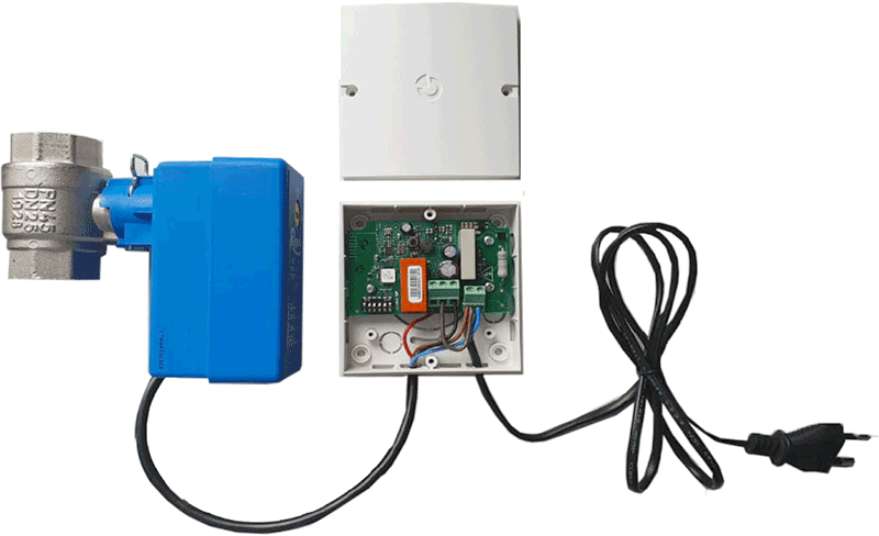 Le système de sécurité JABLOTRON 100+ permet de couper l’alimentation en eau avec une logique « ouvrir-fermer » en utilisant une sortie PG et un moteur électrique, augmentant ainsi la sécurité du bâtiment.