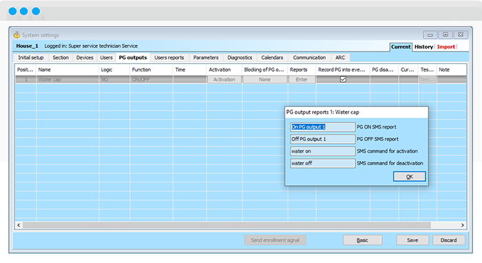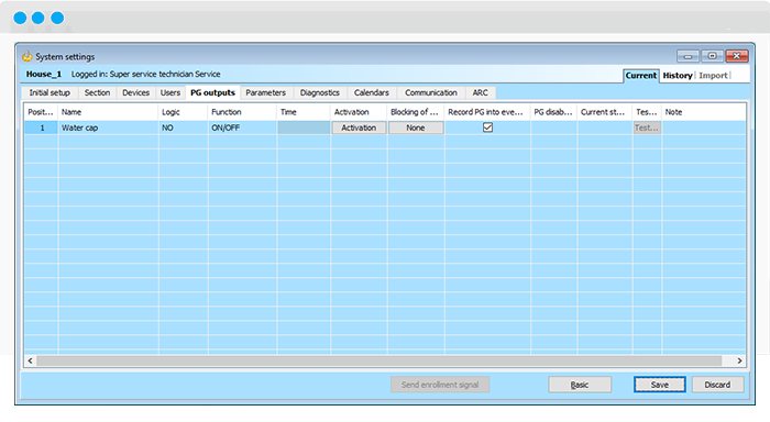 - Configurez le segment pour contrôler la sortie PG1 avec possibilité d’allumer et d’éteindre ainsi qu’option d’autorisation. Si une autorisation est requise, les utilisateurs autorisés devront définir les droits de contrôle pour PG1 dans l’onglet Utilisateurs.