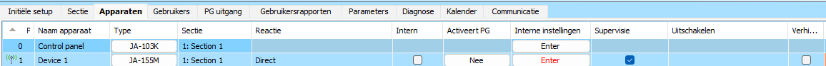 - Om het opslaan van de configuratie te versnellen, volstaat het om de randapparatuur te activeren of de behuizing te openen. De randapparatuur verzendt de activering of sabotage en de nieuwe instellingen worden onmiddellijk opgeslagen.