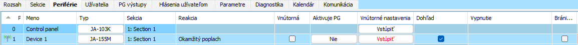 - Periféria vysiela okamžite, vždy pri každej aktivácii detektora, otvorení krytu, poruche atď. Akýkoľvek signál z periférneho zariadenia spustí odpoveď z ovládacieho panela, vrátane možného zaznamenania novej konfigurácie.