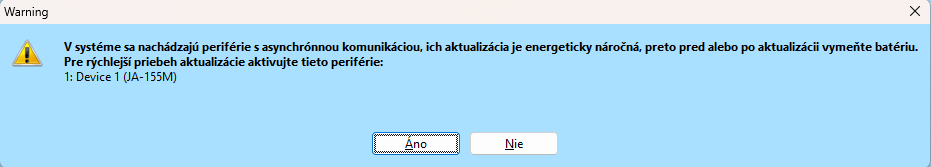 - Ak sa v systéme nachádzajú asynchrónne periférne zariadenia, F-Link vás o tejto skutočnosti informuje pred začatím aktualizácie.