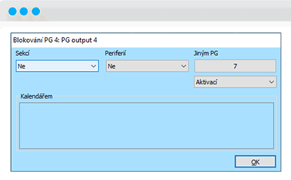 Funkciu tohto PG následne prepojíte s PG4 tak, že u PG4 nastavíte blokovanie „Iným PG“ a vyberiete PG7. Ak teda dôjde k odisteniu vybraných sekcií, dôjde k zablokovaniu slučky blikania.
